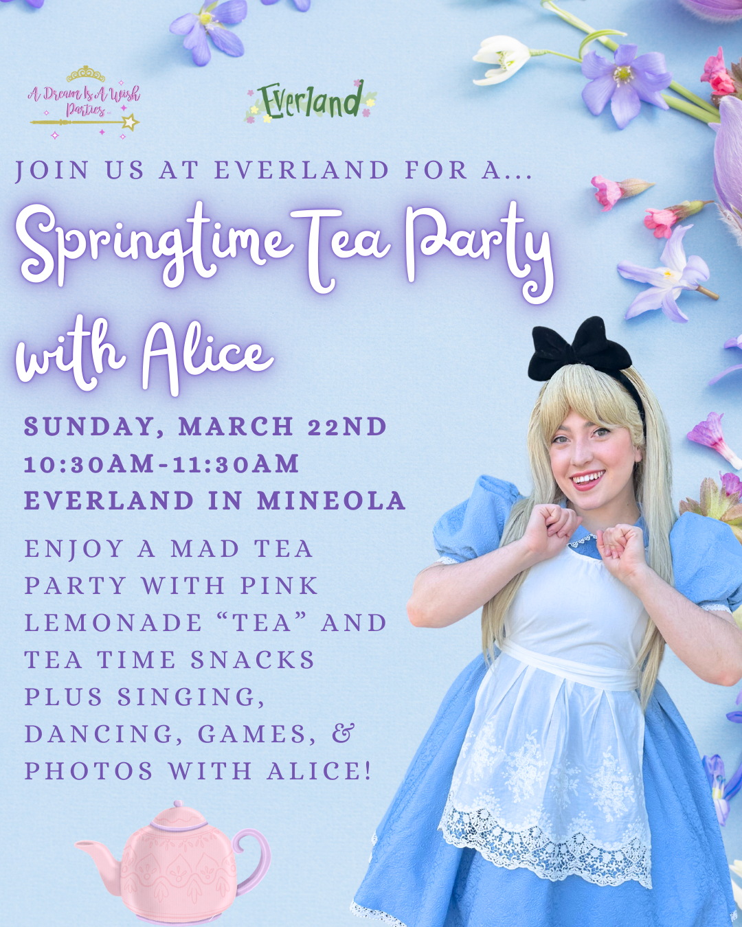 ✨🌸 JOIN US SUNDAY 3/22 FOR A SPRINGTIME TEA PARTY AT EVERLAND MINEOLA 🌸✨